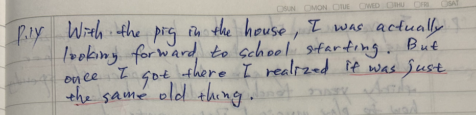 With the pig in the house, I was actually looking forward to school starting. But once I got there, I realized it was just the same old thing.