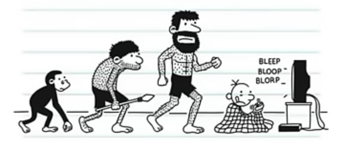 하지만 인간은 진화했고, 이제 우리는 생존을 위해 전기 칫솔, 쇼핑몰, 소프트 아이스크림과 같은 것들이 필요하다.